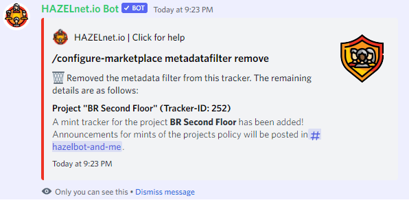 | tracker-id | The tracker ID from which you would like to remove a metadata filter. You can find this ID via /configure-marketplace sales list or the respective commands for mint and listing trackers. |