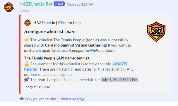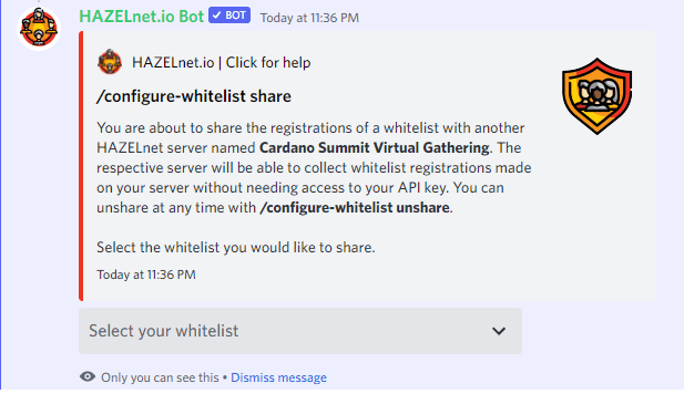 /configure-whitelist share provides you an easy way to implement cross-project whitelists. For example, your community can sign up on your own server for a whitelist for a different project, and you can allow the other project to access your whitelist data without having to send it to them. This enables cross-project promotions that engage communities across Discord server boundaries.